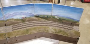 These modules were refurbished by Don Hampton in 1997, then given to John Johnson in 2006, then donated to the club after John’s passing. These modules are designed with a rear track that fits together with the left end of Bob Osterhoudt’s three module coal mine set.
